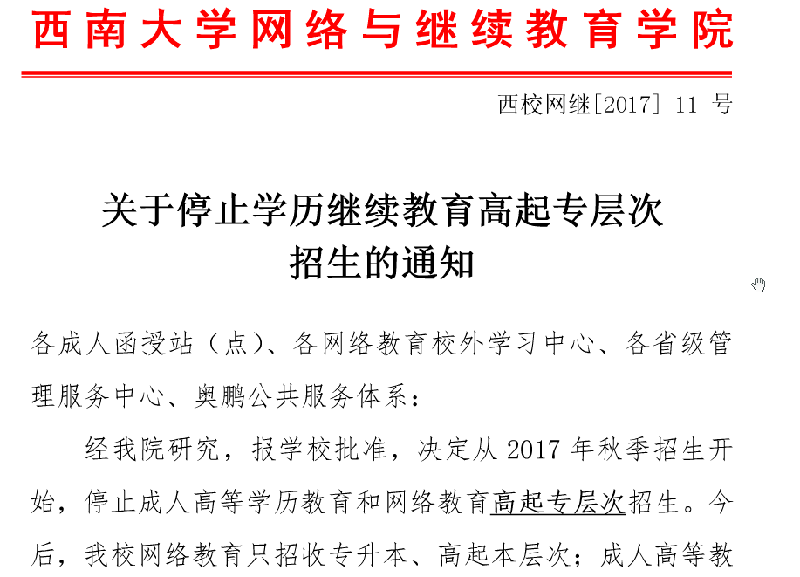 专业停考、取消高起点报考层次
