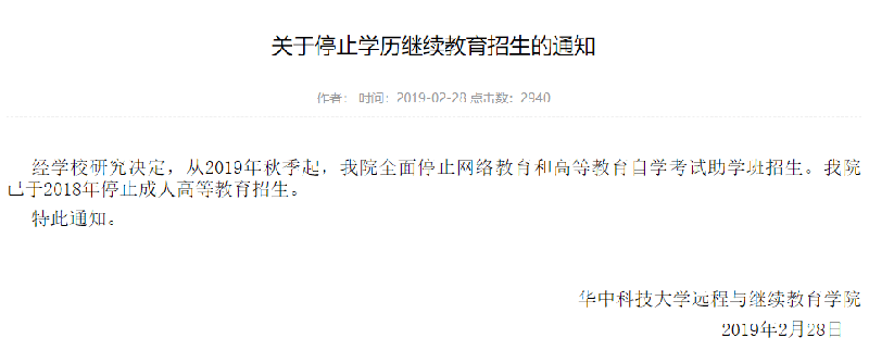 每年不定时都会有几所学校发布公告,成人高等教育停止招生。除了近期的浙江大学和南京大学,自2017年起北京大学正式取消成人继续教育后,清华大学、北京师范大学、东北师范大学、华中科技大学、中南大学……很多学校都在逐渐取消成人教育招生。